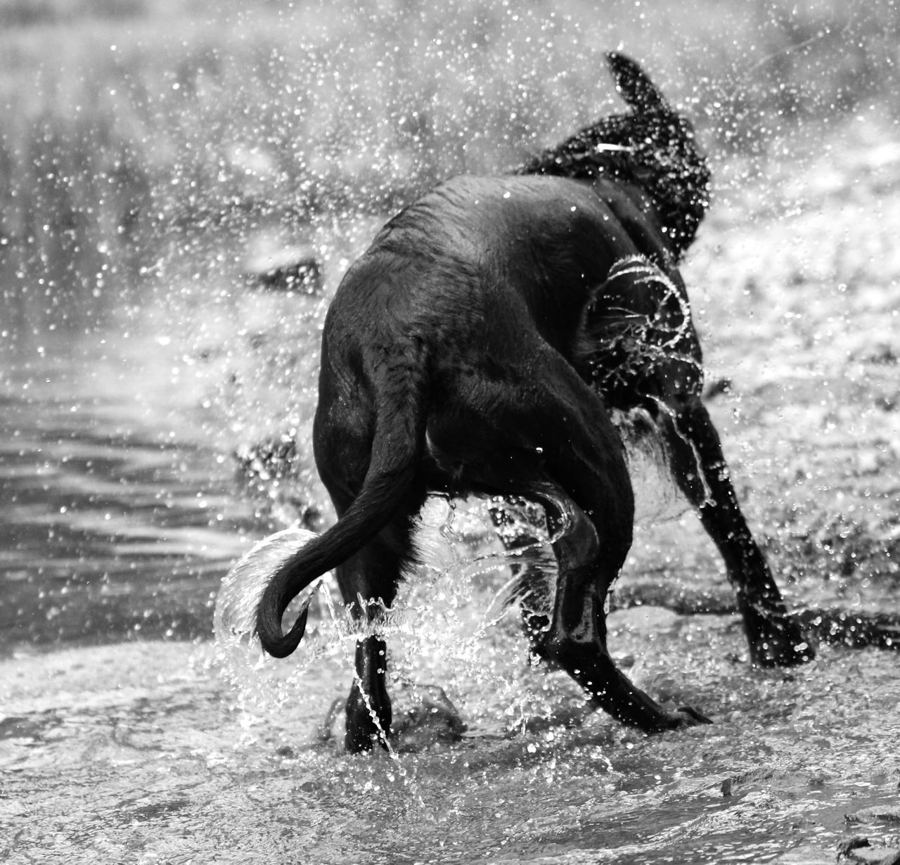 And, of course, when a Lab like R is close to water, you know what happens. This is my black and white photo for this Sunday.
