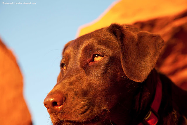 Although we were super careful about protecting the dogs' paws with boots, R still got sore paws during our trip, so it turns out that I don't have many photos of him. We didn't want him clambering around in the red rocks any more than necessary. This is one of the few.