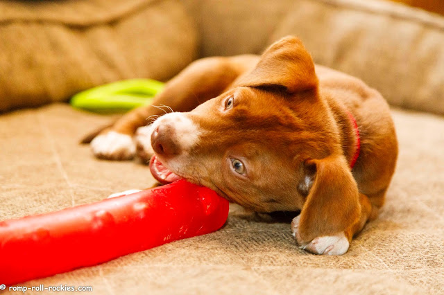 I mix in lots of play with "training" - it's my hope that training will feel as fun as play to him. You'll see a section in the video of me playing tug with him in the midst of training.